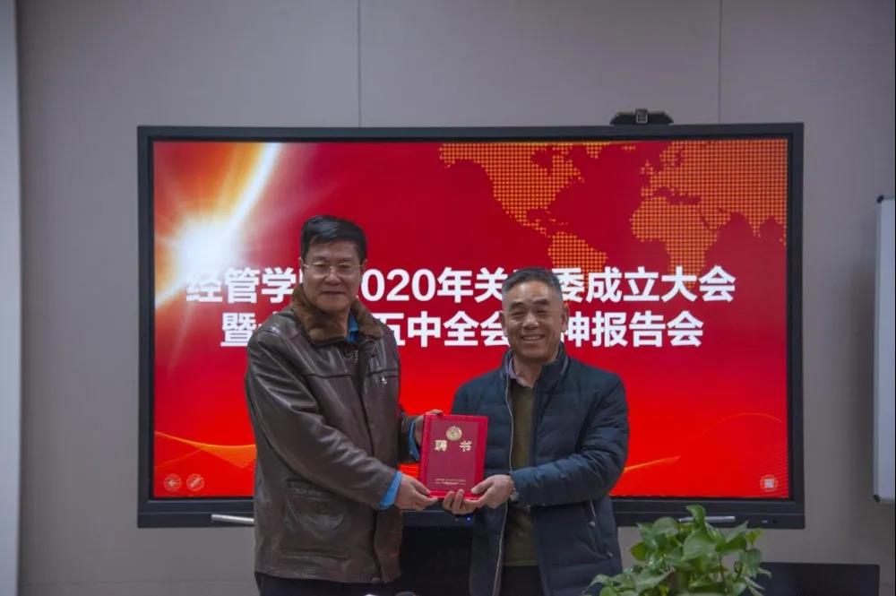 首先,会议的第一项议程是关工委成立大会。牛青杨书记宣布聘任原党委宣传部部长、纪委副书记王宾齐教授为关工委常务副主任,大家对此表示热烈欢迎。随后,牛书记发表讲话,强调关工委工作是党委的一项重要工作,学校对此十分重视。关工委的成立可以发挥老一代教师的优势,这是培养师生的重要社会资源,是对青年学生的一种最生动、最感人的教材,有利于对在校青年进行正确的引导,助力他们全面发展。同时,希望所有的青年同学们以此成立大会为契机,学习相关的理论,能够茁壮成长,真正成为德智体全面发展的社会主义事业建设者和接班人。接下来,马恒运院长为王教授颁发聘书,并拍照留念。