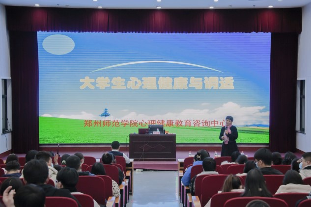 于大教室一举办“大学生心理健康与调适”讲座,本次讲座由院党委副书记方芳和院团委书记杨鑫主持,郑州师范学院心理健康教育咨询中心主任李宛青教授主讲,院团委老师到场出席,19级、20级、21级主要学生干部积极参加。