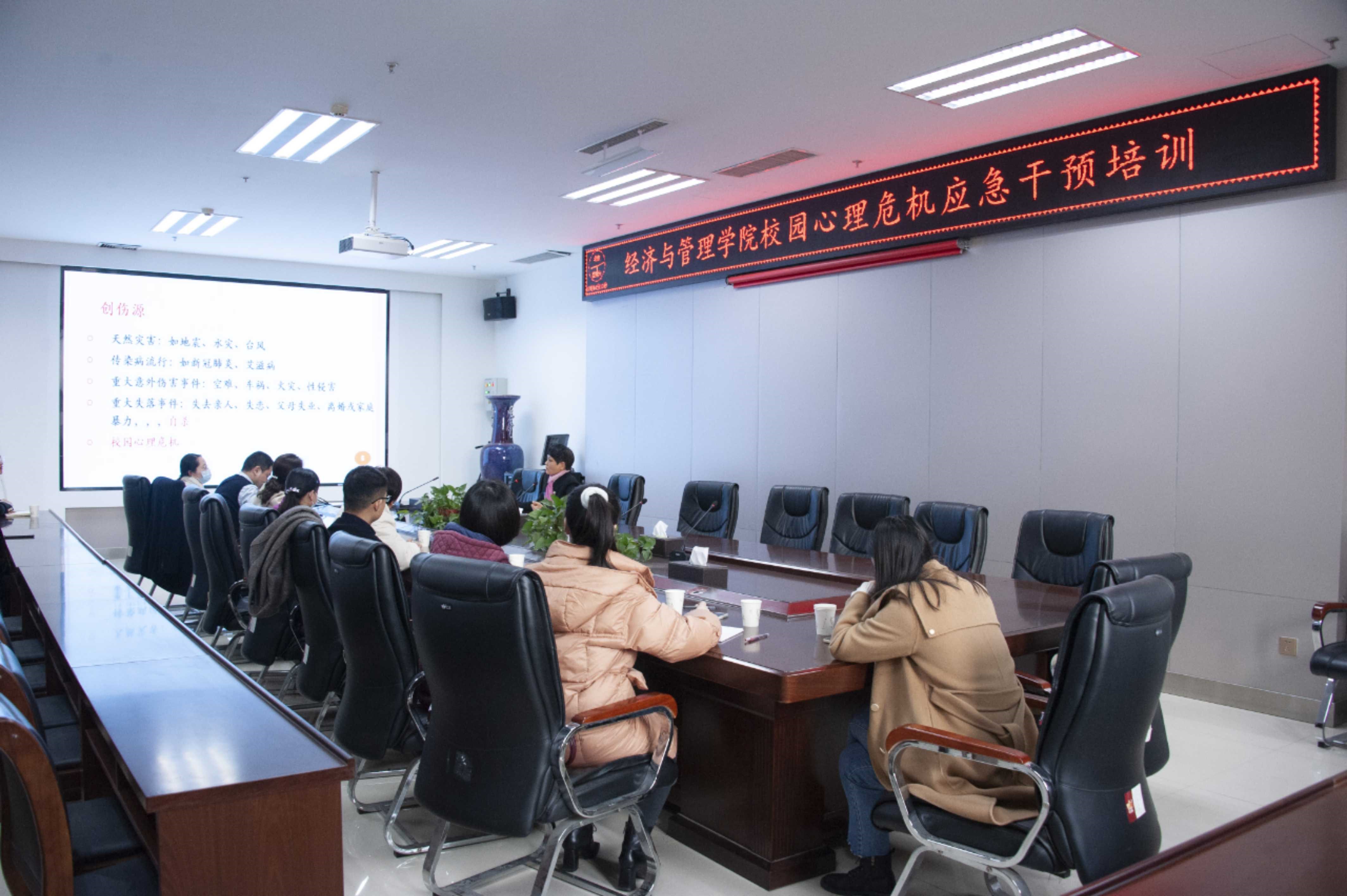 于教学楼A215召开校园心理危机应急干预培训座谈会,本次座谈会由郑州师范学院心理健康教育咨询中心专家李宛青主持,院党委副书记方芳,院团委书记杨鑫,各团委老师、辅导员、班主任老师出席此次会议。