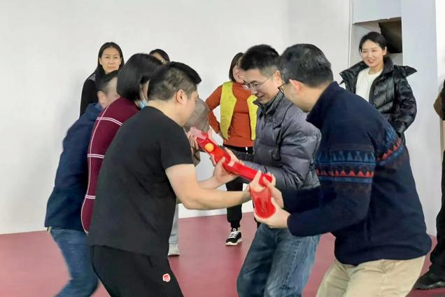 本次趣味运动会包括“千里传珠”、“同心击鼓”、“四人五足”、“环环相扣”、“合力建塔”五个项目,不仅考验着教职工的身体素质,更考验着团队协作能力和沟通能力。活动开始后,每位老师都积极投入、全力以赴,用实际行动诠释了合作进取的团队精神,不断将现场气氛推向高潮。场外,观战的老师纷纷加油、喝彩,现场时不时迸发出一阵阵笑声与掌声,每个人的脸上都洋溢着幸福和快乐。此次活动的每个项目都饱含了趣味性、充满了挑战性,现场气氛热烈又紧张,教职工们不仅赛出了个人风采,更展示了团队的凝聚力。在欢声笑语中,此次活动圆满结束。