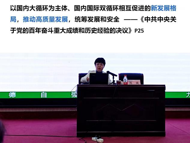 讲座中,陈娱教授从学习习近平谈治国理政系列丛书的重要意义入手,提纲挈领为我们解读了习近平谈治国理政的重要内容,梳理了读原著、学原文、悟原理的方法,理清了习近平总书记理论思想观点发展的脉络。