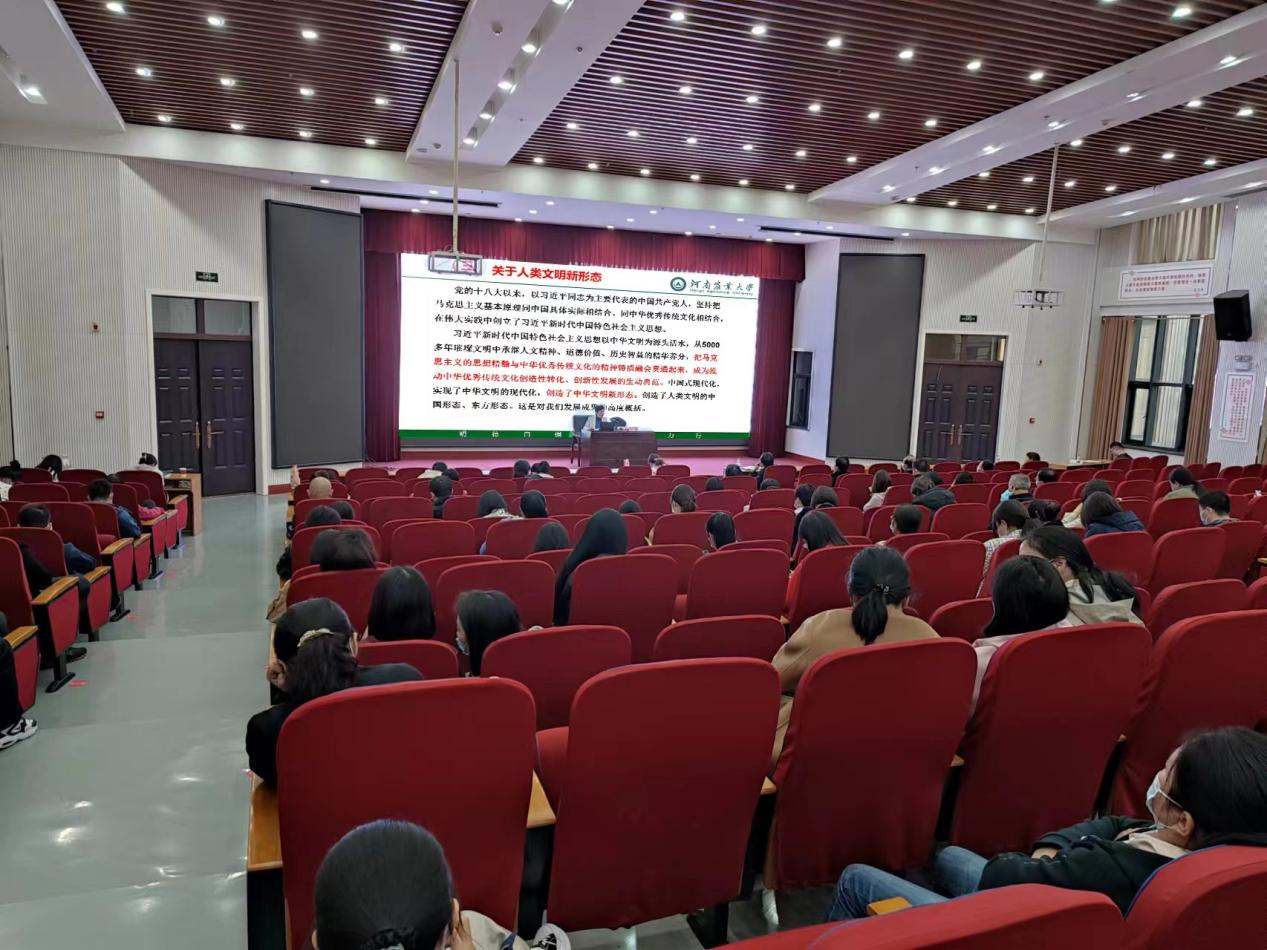 为凝聚思想共识、汇聚奋进力量,10月11日,台湾av女优 召开党委理论中心组学习(扩大)会议,特邀马克思主义学院教授陈娱讲授马克思主义中国化时代化的最新成果,学习《习近平谈治国理政》第四卷。学院全体教职工参加学习。会议由党委副书记方芳主持。