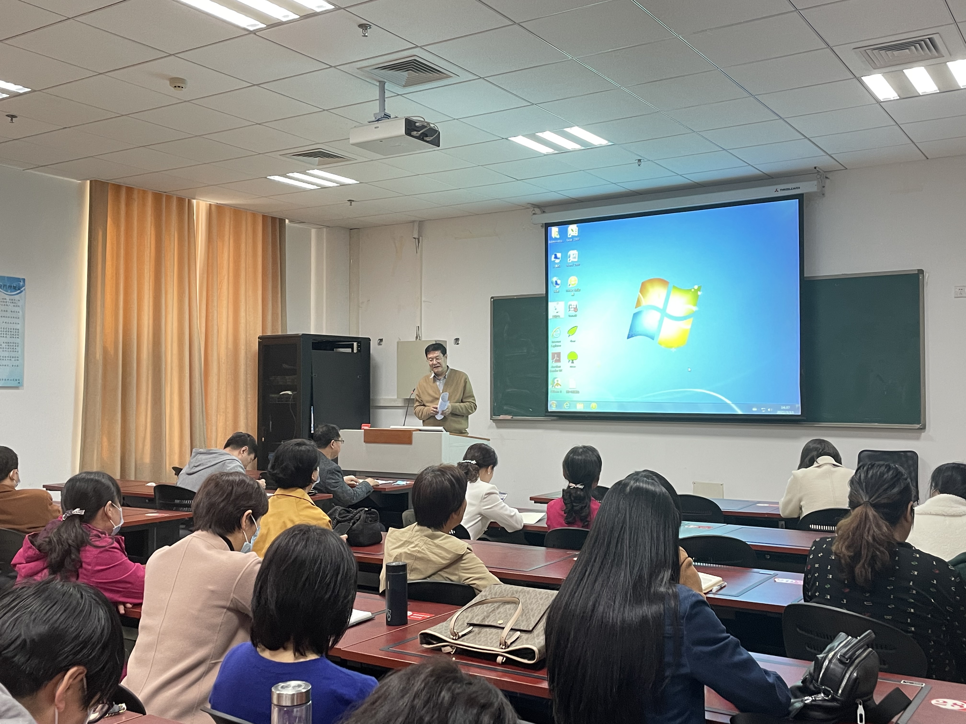 在繁塔楼B208会议室召开全体教职工大会。学院领导及教职工参加会议,会议由院党委书记牛青杨主持。