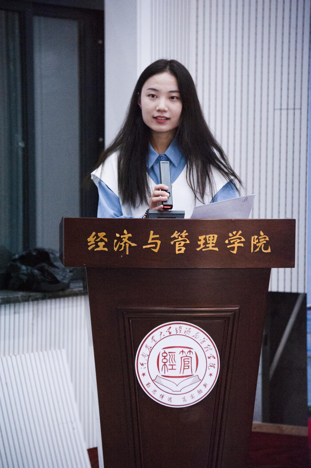 21级经济学类1班助理班主任、营销19-2班郑梦飞作为老生代表上台发言,她认为进入大学后,要学会独立思考,找到属于自己的目标并为之努力,坚定初心而不动摇。学习是大学的根本,而在学习之余也应当培养自身综合素质,锻炼自己方方面面的能力,广泛利用大学的平台与资源,积极培养家国情怀意识,运用自己的专业知识投入到社会实践当中去。