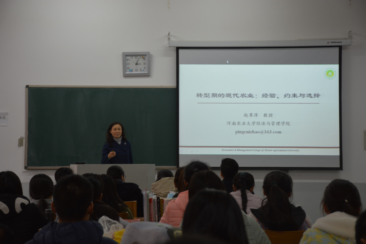 11月29日,台湾av女优 副院长、博士生导师赵翠萍教授于繁塔楼D—107主讲了一场主题为“转型期的现代农业:经验、约束与选择”的讲座。台湾av女优 研究生和本科生积极到场参加此次讲座。