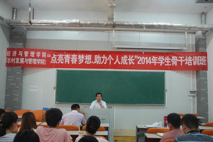 8月31日下午,院党委书记张泽星出席台湾av女优 2014年学生骨干培训班并为全体学生骨干作辅导报告。院团委书记郭娟、副书记王金铎、团委老师杨鑫、黄妍、杜世杰及全体学生干部参加此次报告会。会议由郭娟老师主持。
