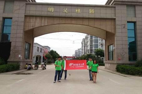 社会实践的第一天,同学们来到了东明义村。公路的另一侧是富丽堂皇的温泉花园,旁边精致高端的商品房鳞次栉比,队员们都被这样的环境所震惊。队员们在社区中观察,在楼与楼之间寻觅巡访对象却没有见到多少人,只在一家简单装修的学前班门口见到了老师和家长们,便走上前去询问明义社区的基本状况。通过与村民聊天,了解到了很多现在新农村建设遇到的待解决问题。东明义村原址位于如今温泉花园酒店及建业商品房所在地,由于村子发展需要引来承包商,并将原东明义村集体迁到路对面的在一片荒地上建好的社区房,原址上建起了度假花园酒店及商品房基地。从当地村民口中听到,他们有人很不满被拆迁后承包商给的补助,甚至有过争执。东明义村现在留下的都是老人和小孩儿,新农村建设并没有起到明显效果,不仅经济没有发展,连村民赖以生存的土地也没了,整个社区的经济基本是靠外出打工上班的年轻人来提供的。