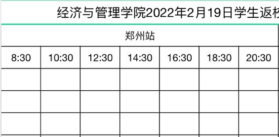 注:为促进大家顺利安全返校,学校将在郑州站、郑州东站和新郑机场设置免费接站服务,届时将有接站点。接站时间如下: