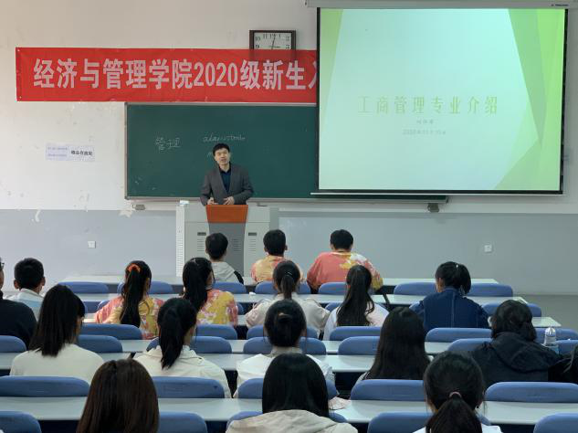 在教学楼C104举行2020级新生入学教育——工商管理专业报告会。此次报告会由工商管理系教授何泽军老师主讲,2020级工商管理专业全体新生积极到场参加。