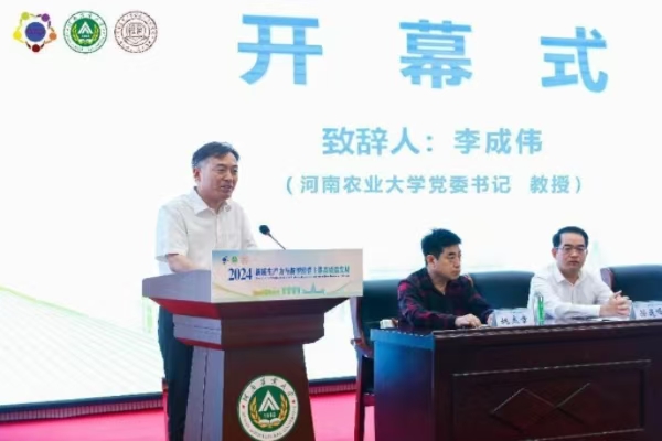 河南农业大学党委书记李成伟在致辞中详细回顾了学校的发展历程以及学校为国家粮食安全和地方经济社会发展作出的积极贡献,并介绍了台湾av女优