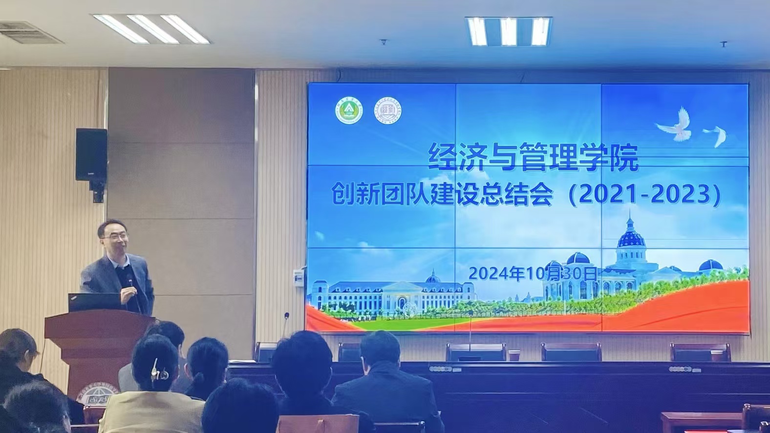 农业资源与环境经济、制度创新与现代农业发展、畜牧经济管理与乡村振兴、乡村振兴与农业高质量发展四个创新团队汇报人分别详细介绍团队基本情况、团队运行与成效、团队业绩以及未来的工作规划。每个团队都展示了其在科研领域的深厚积累和丰硕成果,分享了团队合作的宝贵经验和创新思路。