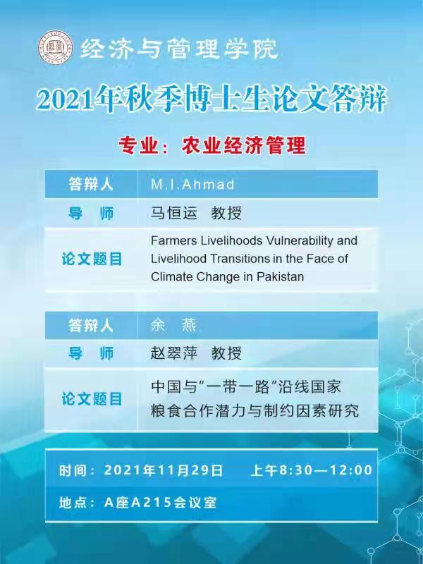【紫竹论坛】2021年秋季博士生论文答辩