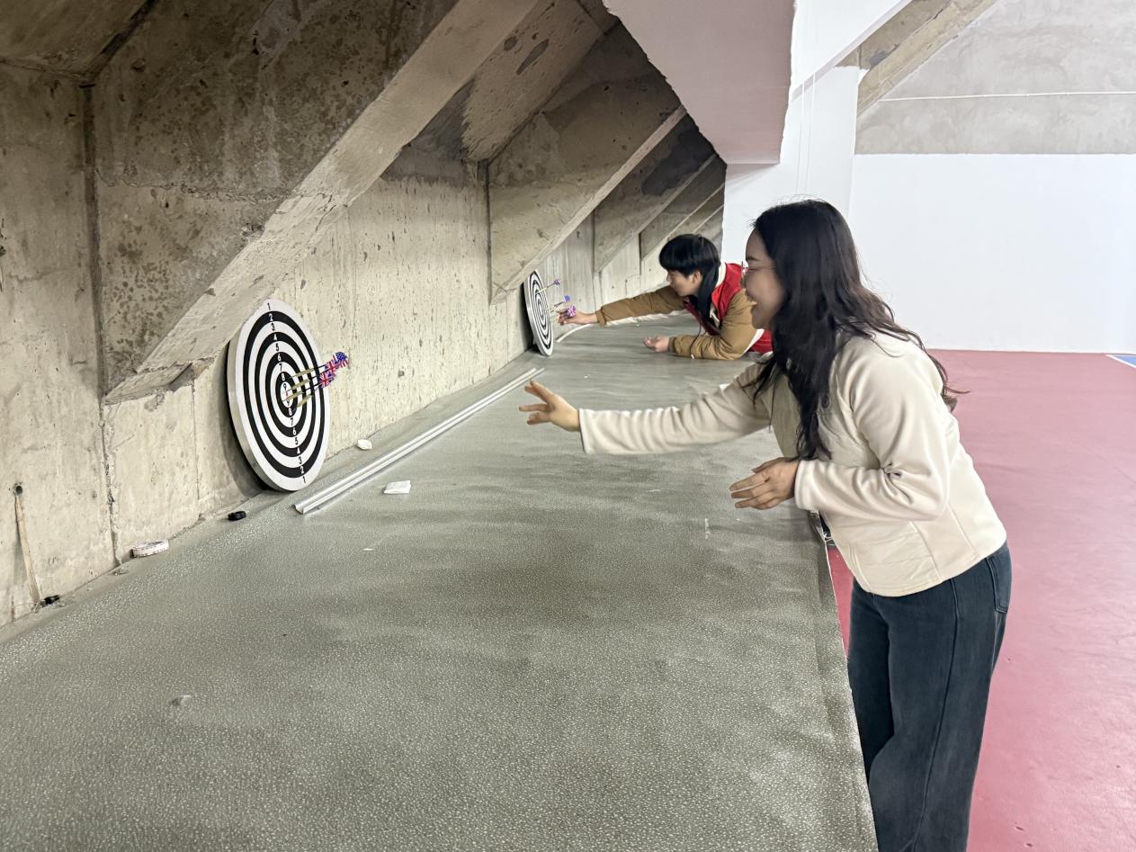 本次趣味运动会以“‘经’彩飞扬,‘马’上快乐”为主题,设置集体与个人两大类别趣味项目,兼顾协作性与趣味性。集体项目中,“一圈到底”考验团队协作的默契;“传球接力”则让老师和同学们完成接力轮换,紧张又欢乐。个人项目同样精彩纷呈,趣味投壶、飞镖投掷以精准度和用时决胜,套圈游戏则让参与者在轻松投掷中收获惊喜,赛场下,加油声、欢呼声此起彼伏,欢声笑语弥漫。无论是集体项目中整齐划一的协作,还是个人项目里专注投入的身影,都展现出经管人积极向上的精神风貌。