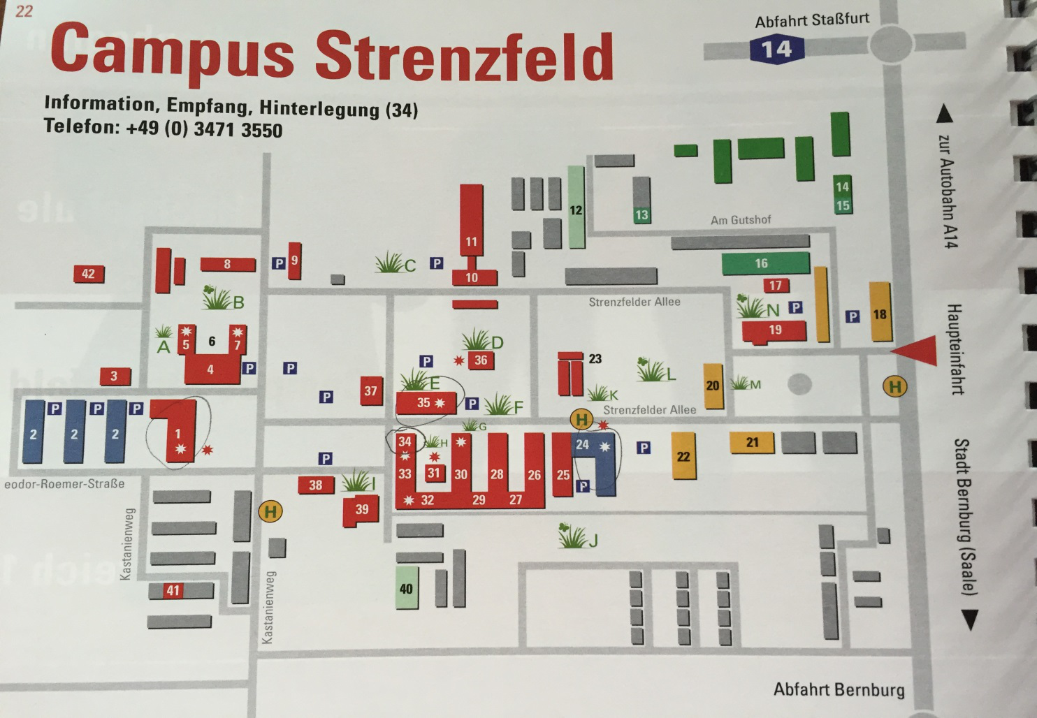 我们所在的Bernburg小镇Strenzfeld校区平面图如下,基本需求都能满足: